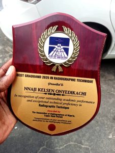 Hi, I’m Kelsen Nnaji, a graduate of Radiography from the University of Lagos. Truthfully, I wasn’t trying to be one of the best as undergraduate. I just worked towards getting a first class, because my academic journey didn’t start on a high note. In my first few semesters, my CGPA wasn’t up to 4.0, but in year 3, COVID happened. That period helped me to reflect and resolve to finish with a first class, because I knew I was capable of getting it done. So, I got a pen and did the maths – I drafted out the least required grades needed to achieve that goal and made sure to stick by it. From that moment in year 3, my CGPA went up till year 5, and I eventually emerged as the best student in “Other Imaging Modalities and Radiographic Technique”. Additionally, I was the joint best in the board professional examination. I’m thankful to God for everything, because there were numerous times when one mark could have made me miss out on my goal, but I was always right on track.